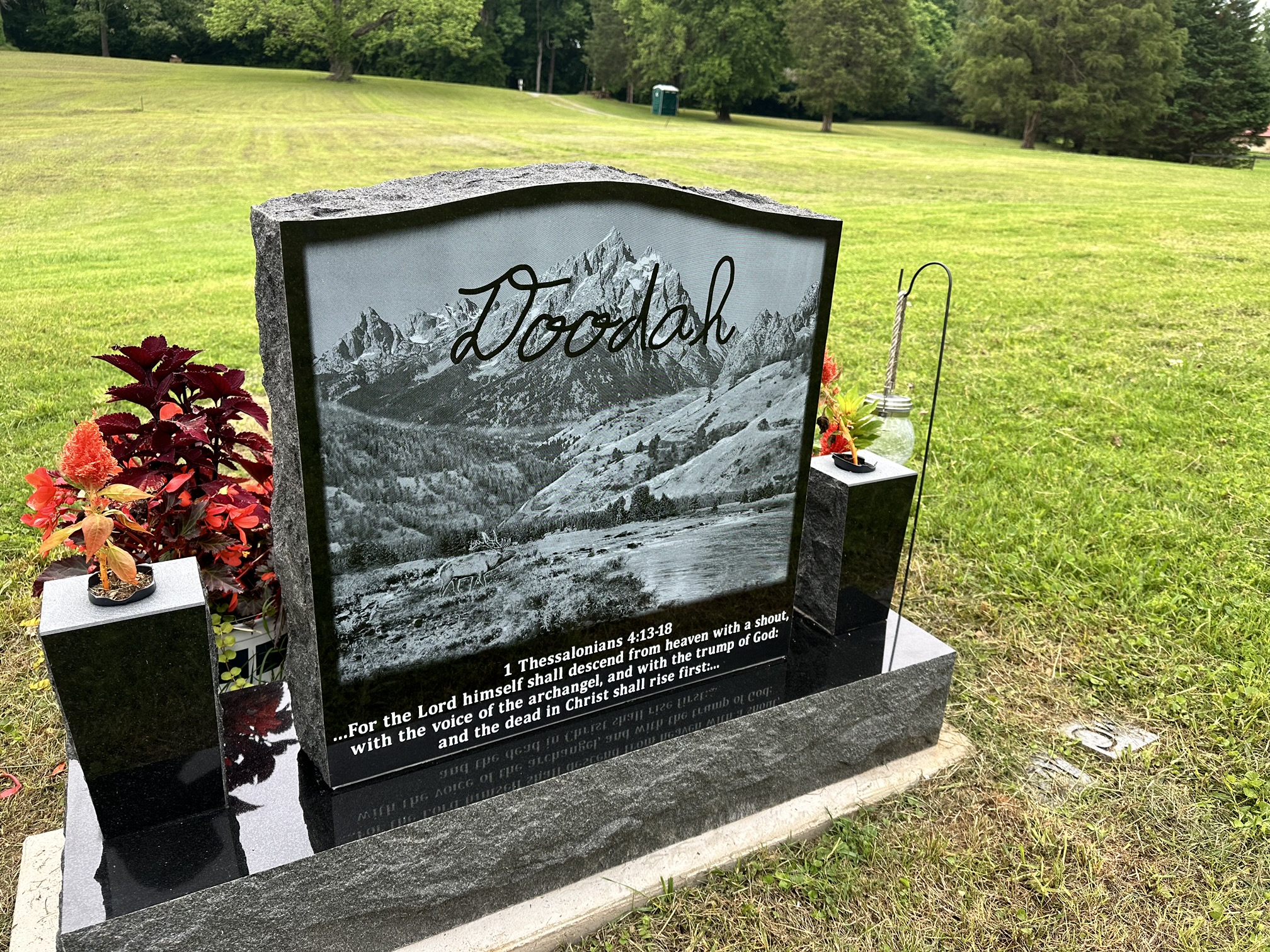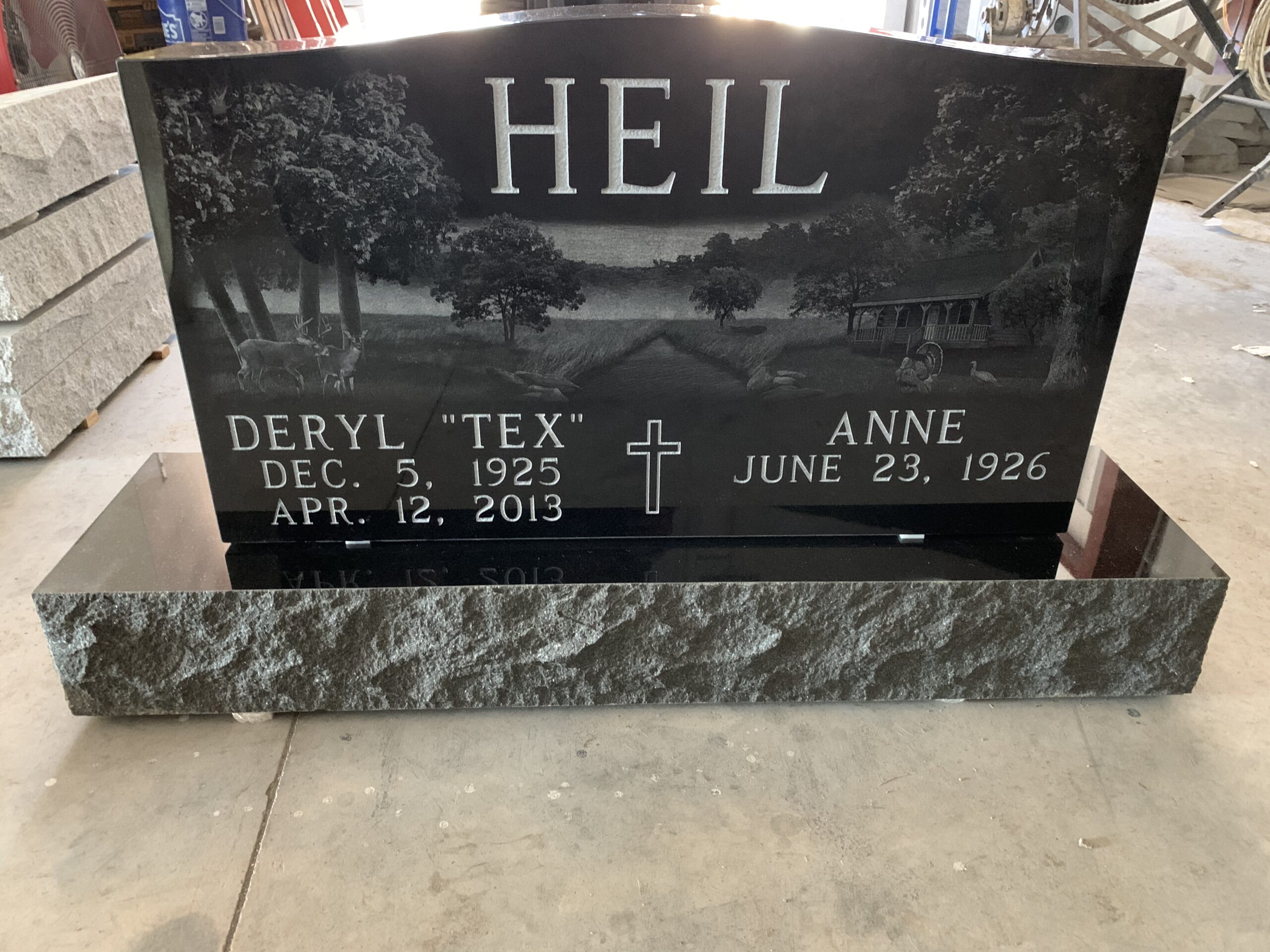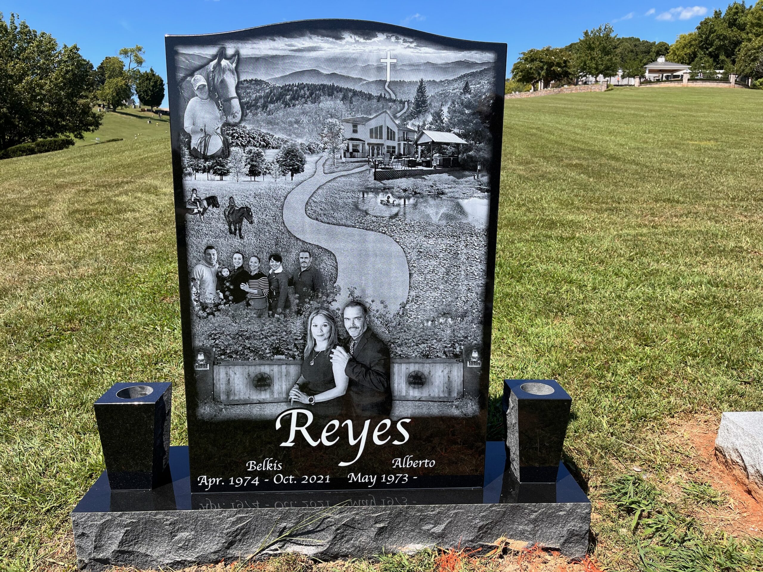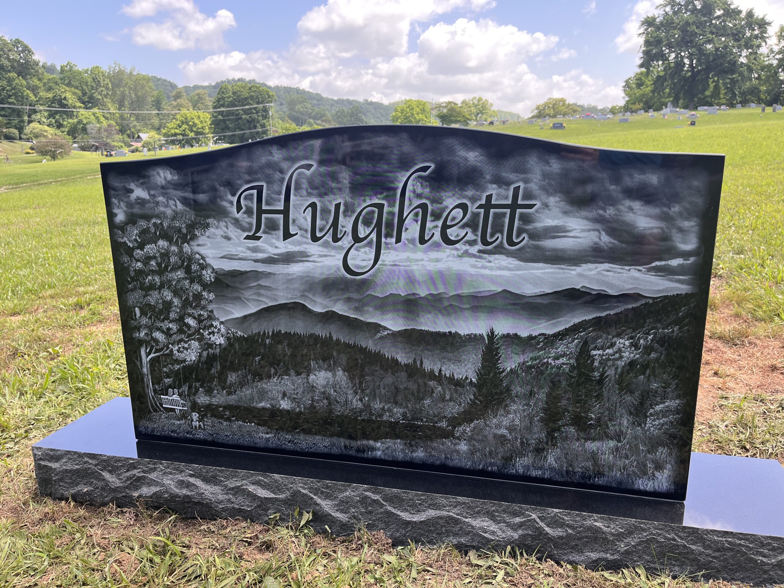 We can do etchings by laser, sandblasting or by hand. Also, we can add color or we can leave them in black and white. It is a great way to add a personal/artistic touch to your memorial. Below you will see some examples of the many ways you can add an etching to your memorial.
